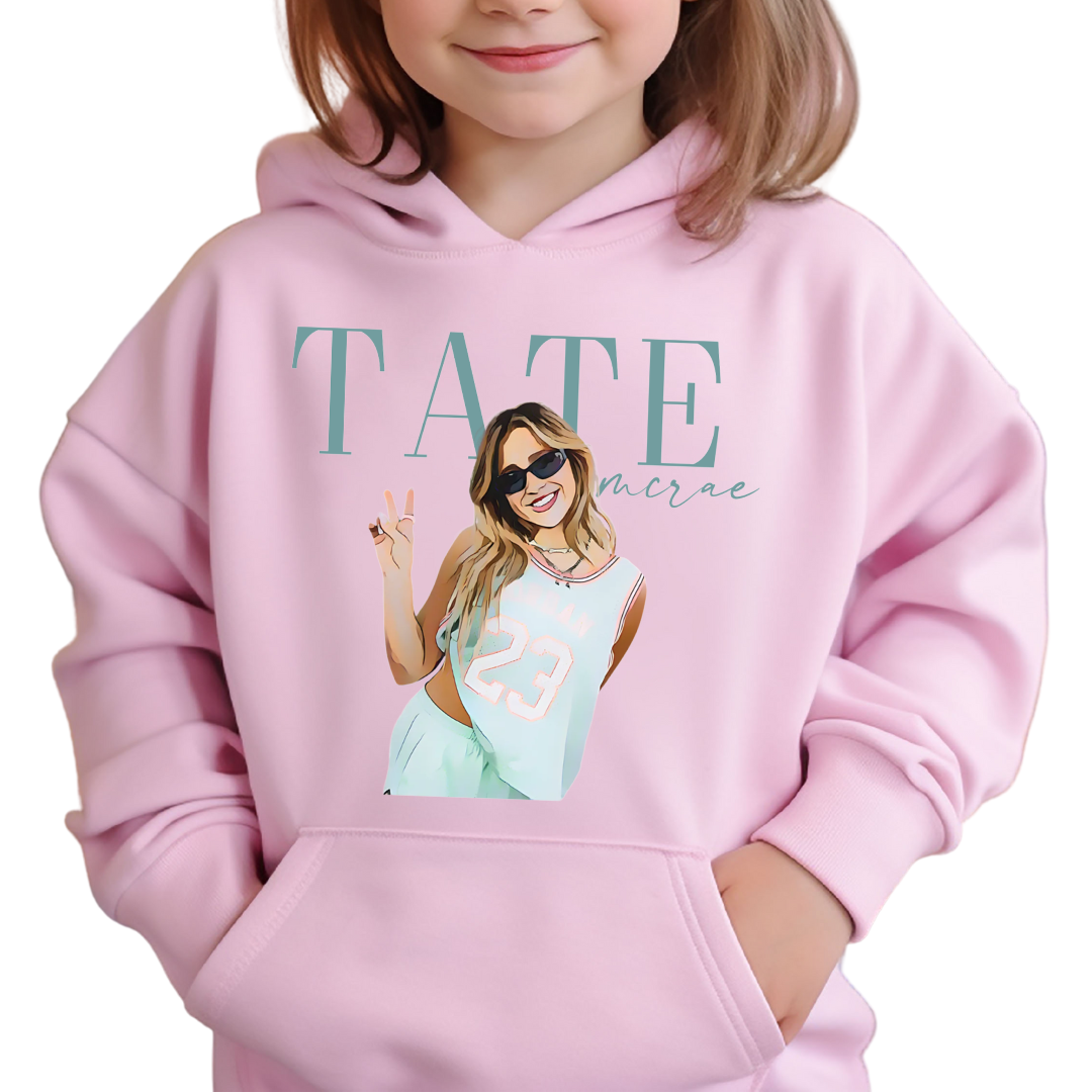 Get ready to rock your style with the POP STAR VIBES hoodie! Designed for comfort and fun, this hoodie is perfect for young fans who want to show off their love for Tate McRae. Soft, cozy, and effortlessly cool, it’s the perfect companion for every adventure and chill session. Slip it on and let the good vibes roll!